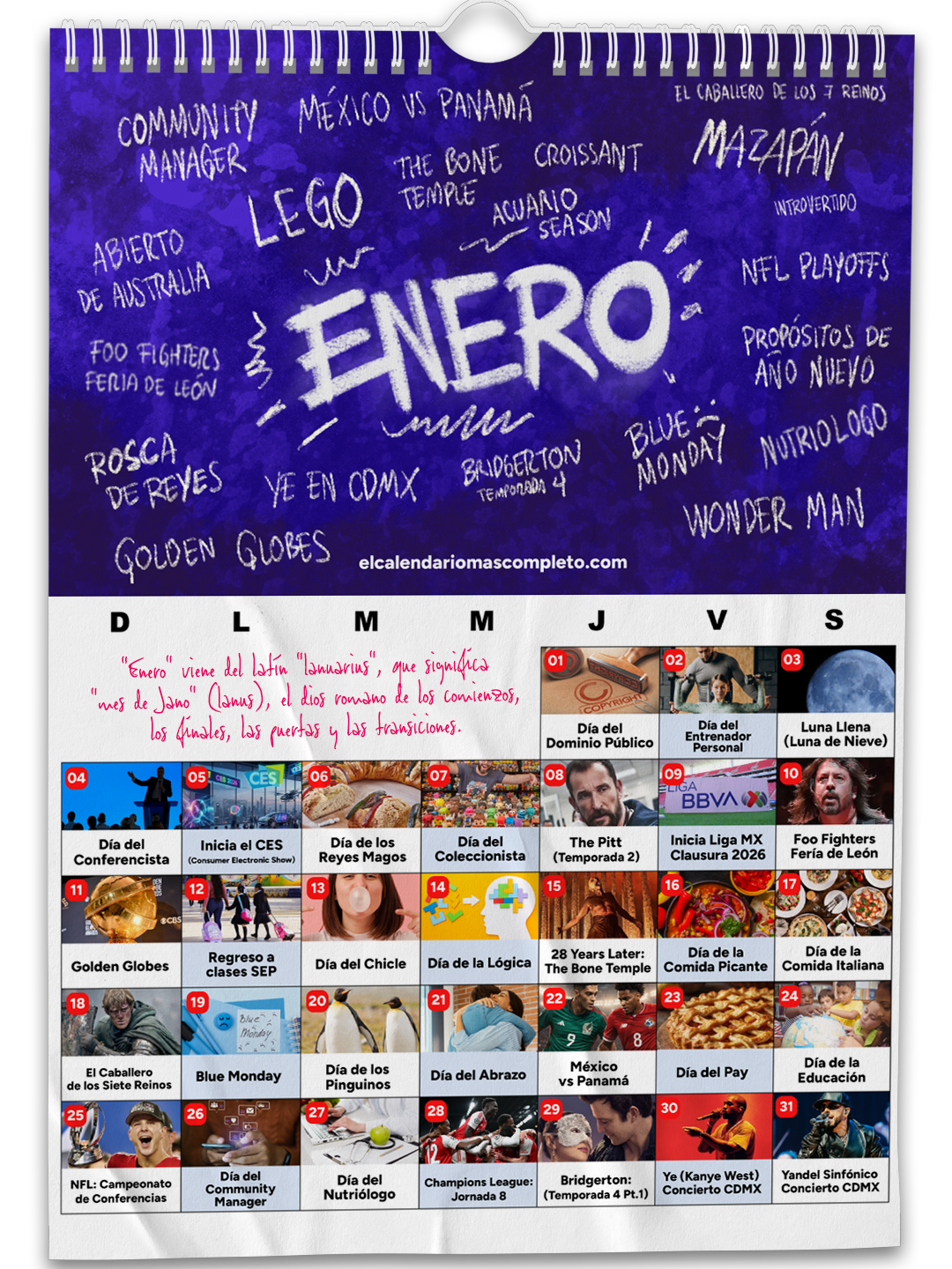 Descubre todas las fechas, eventos, conciertos, lanzamientos, etc. que ocurrirán en el mes de Enero durante el 2026 para tu planeación de contenido.